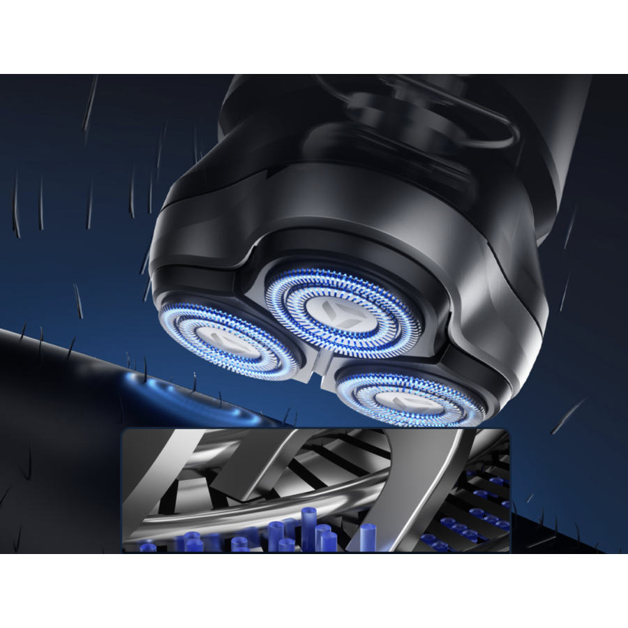 Електробритва Blackstone Max оснащена висувним тримером, що забезпечує додаткову зручність під час догляду за бородою, вусами чи контуром стрижки. Подвійні леза на трьох обертальних головках електробритви розроблені так, щоб забезпечувати довготривалу ефективність, а можливість очищення під струменем води гарантує простоту в догляді й оптимальну гостроту. Завдяки компактному і легкому дизайну вагою всього 0,1 кг електробритва стане базовим елементом для швидкого та комфортного гоління. Почніть день із впевненістю: оберіть ENCHEN Blackstone Max і насолоджуйтесь гладким обличчям щоразу.
