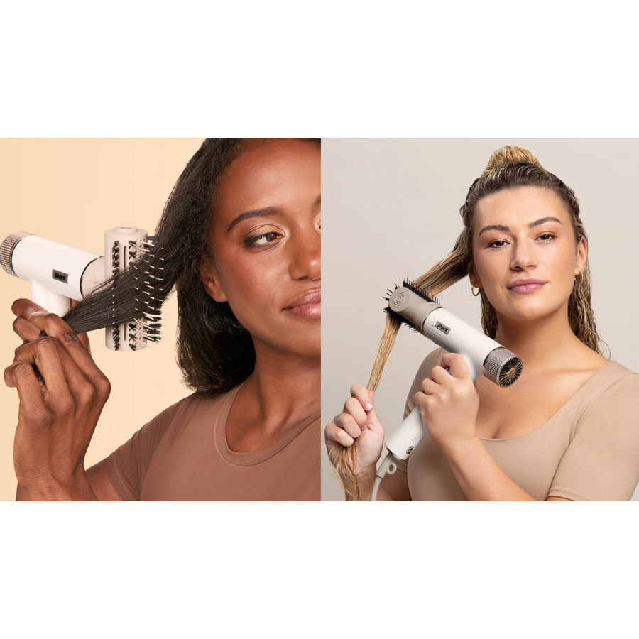 Щітка для укладання забезпечує гладкість і обʼєм: з нею можна швидко розгладити пасмо за один прохід під час сушіння завдяки відмінному поєднанню натуральної щетини та нейлону; одним натисканням кнопки змінюйте кут використання та поліруйте кожну волосину