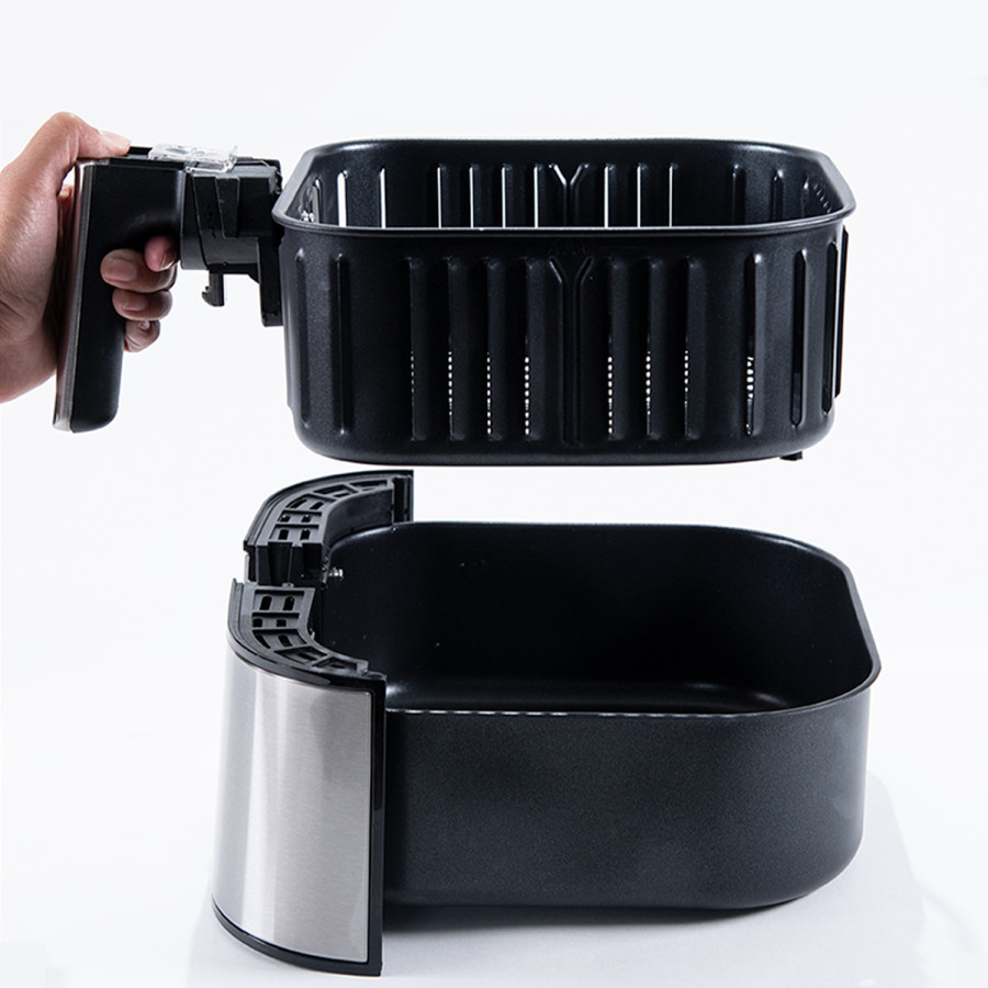 Подвійний антипригарний кошик знімається з основи одним натисканням кнопки, він легко миється під проточною водою, також підходить для посудомийки. Пристрій не містить токсичних компонентів, тому ви можете бути впевнені в його безпеці для здоровʼя. Покриття з нержавіючої сталі робить Cosori зносостійкою та довговічною.