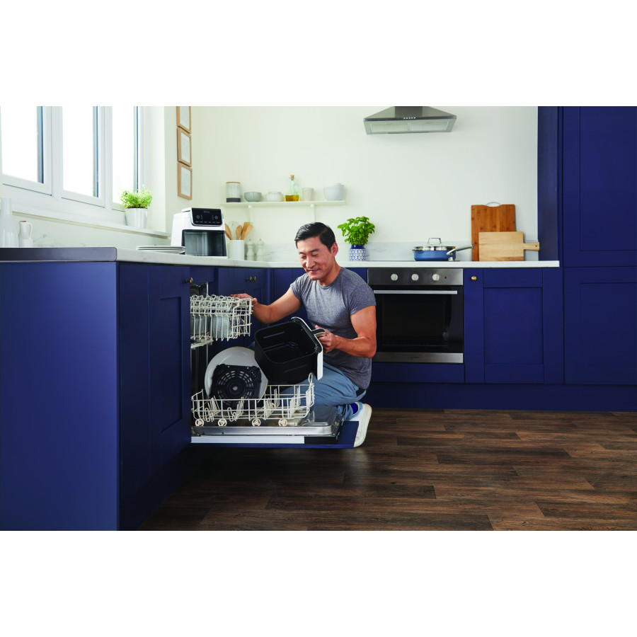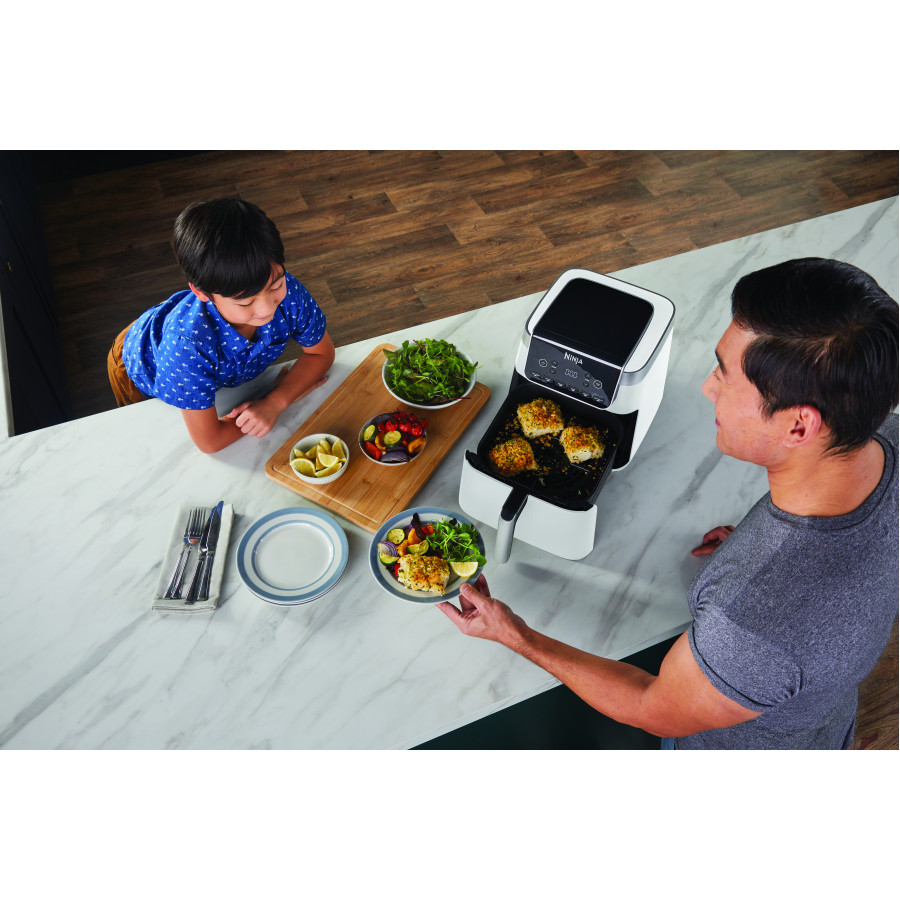 З Ninja Air Fryer MAX PRO AF180EUWH процес приготування не лише легкий, а й позбавлений турбот щодо прибирання. Завдяки антипригарному покриттю, яке не боїться температурних впливів та контактів з водою, ви забуваєте про відтирання пригорілих залишків після кожного використання. Кошик і панель можна без зусиль мити як вручну, так і в посудомийній машині. Пристрій значно знижує потребу в олії та дозволяє готувати смачні страви без шкоди для здоров’я. Іноді хочеться спробувати страви з фастфуду, але з мультипіччю Ninja можна готувати більш безпечні варіанти вдома.