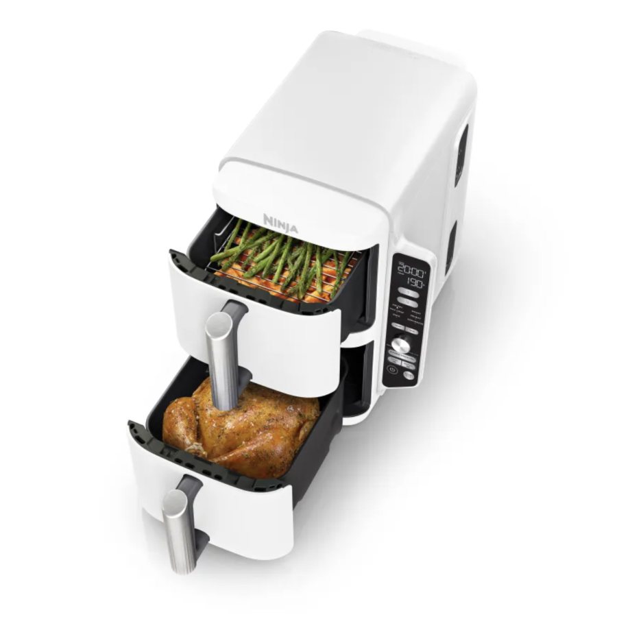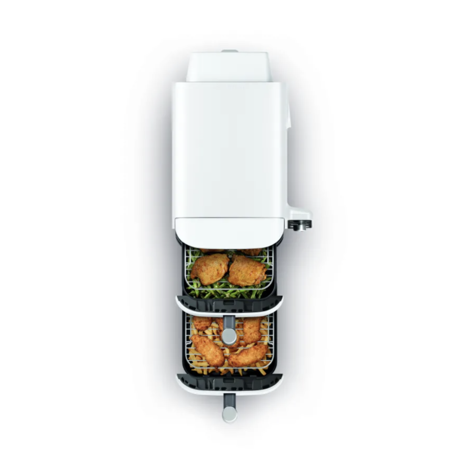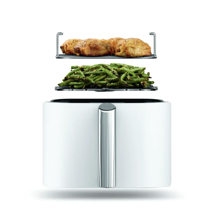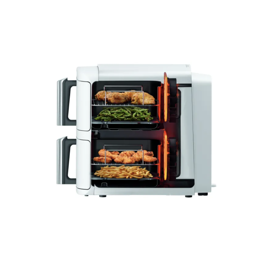 Витончений білий корпус мультипечі Ninja Double Stack XL SL400EUWH і двоярусна конструкція кошиків додають простору елегантності. Технології Ninja поєднуються з бездоганною естетикою та функціональністю: антипригарне покриття і знімні деталі, що ідеально підходять для миття в посудомийній машині, гарантують мінімум зусиль і максимум задоволення від кожного використання. Тепер ваша кухня — це не лише місце для приготування страв, а простір, де інновації й стиль працюють для вашого комфорту.