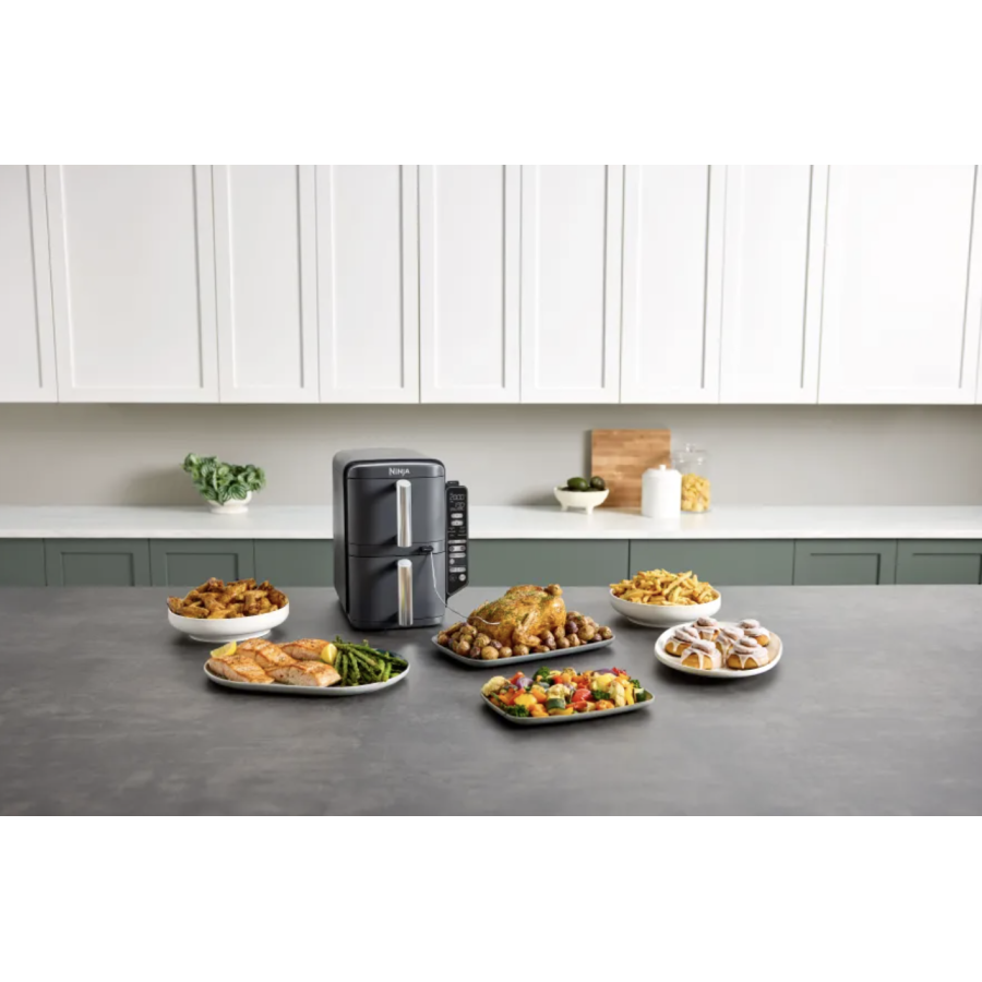 Розкрийте свій кулінарний потенціал разом із Ninja Double Stack XL! Завдяки 6 універсальним режимам приготування мультипіч полегшить створення різноманітного, збагаченого важливими мікроелементами раціону з неперевершеними смаковими властивостями.