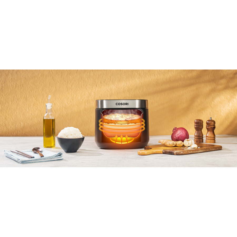 Система безпеки пристрою включає автовимкнення та захист від перегрівання. Антипригарна поверхня допоможе вам не заморочуватися з очищенням, комплектуючі підійдуть і для посудомийки. Готуйте для діток та чутливих людей, адже Cosori не містить токсичних сполук. І не забудьте заглядати до книги рецептів та онлайн-посібника, щоб дивувати себе та близьких смачними експериментами.