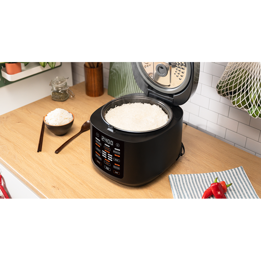Не обмежуйте свої смакові рецептори в гастрономічних витворах мистецтва! Мультиварка запрограмована таким чином, щоб ідеально обробляти продукти та тішити вас смачними композиціями. У розпорядженні пристрою функції для приготування різних видів рису, вівсянки, кіноа, ячменю, ви можете обирати потрібну текстуру та час. Також є режими смаження, пароварки, томління, підтримання температури і відкладений старт.