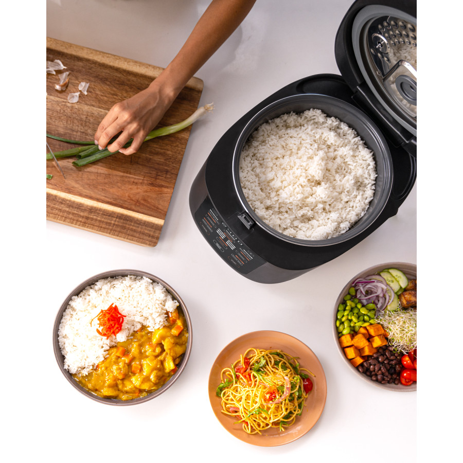 Завдяки мікрокомп’ютеризованій технології Fuzzy Logic мультиварка точно контролює температуру під час 6-етапного процесу приготування, а також кожен процес: розігрівання, водопоглинання, нагрівання, кипіння, пароутворення та підтримання тепла. Дисплей показує залишок часу до фінішу. Маркування рівня води з внутрішньої сторони чаші дозволяє гарно розрахувати співвідношення інгредієнтів.