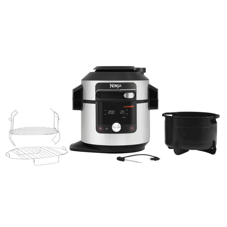 Один пристрій здатен замінити гриль, сковорідку, каструлю, йогуртницю, скороварку, пароварку, конвекційну плиту, фритюр, сушку, і як бонус ви отримаєте ще й смарт-термощуп для точного контролю готовності страв! Мультиварка-скороварка Ninja Foodi MAX OL750EU вміщує цілу курку із великим об’ємом, нагодує за один раз 6 людей повноцінним прийомом їжі із двоярусною решіткою, і звісно, має антипригарне покриття та зручна у використанні.