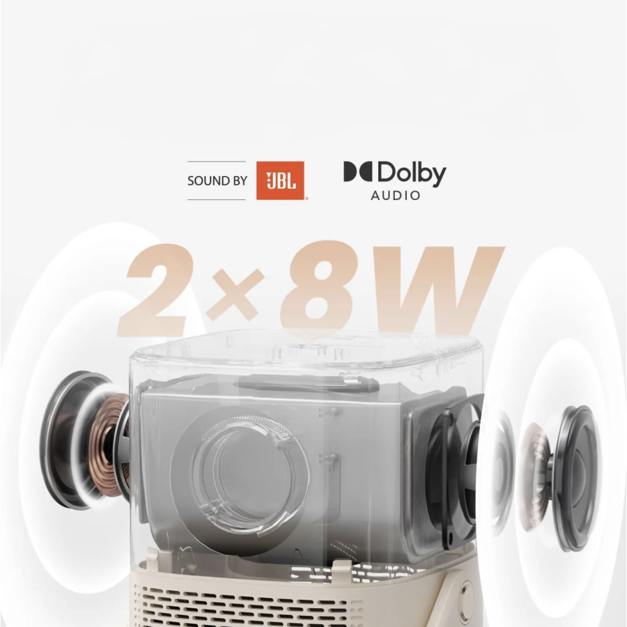Yaber T2 Plus limited edition оснащений двома потужними динаміками з підтримкою Dolby Audio. Це світовий стандарт чистого звучання, тому ідеально доповнює якісне зображення від Yaber. Додаткові колонки не потрібні, коли оригінальний звук вражає глибиною, чистотою і яскравими враженнями. Ви отримуєте насичене, об'ємне звучання, яке проникає в кожен куточок кімнати. Баси глибокі, а діалоги чіткі, ніби ви в самому центрі звукового простору. Тепер для справжнього кінематографічного досвіду вам не потрібно шукати додаткове обладнання.