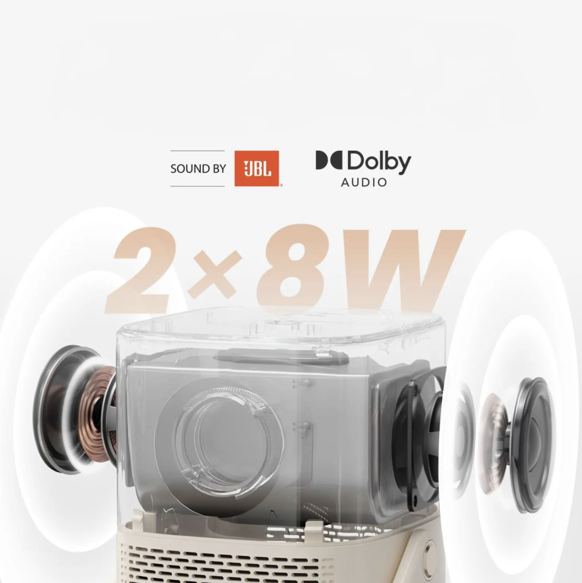 Yaber T2 Plus оснащений двома потужними динаміками з підтримкою Dolby Audio. Це світовий стандарт чистого звучання, тому ідеально доповнює якісне зображення від Yaber. Додаткові колонки не потрібні, коли оригінальний звук вражає глибиною, чистотою і яскравими враженнями. Ви отримуєте насичене, об'ємне звучання, яке проникає в кожен куточок кімнати. Баси глибокі, а діалоги чіткі, ніби ви в самому центрі звукового простору. Тепер для справжнього кінематографічного досвіду вам не потрібно шукати додаткове обладнання.