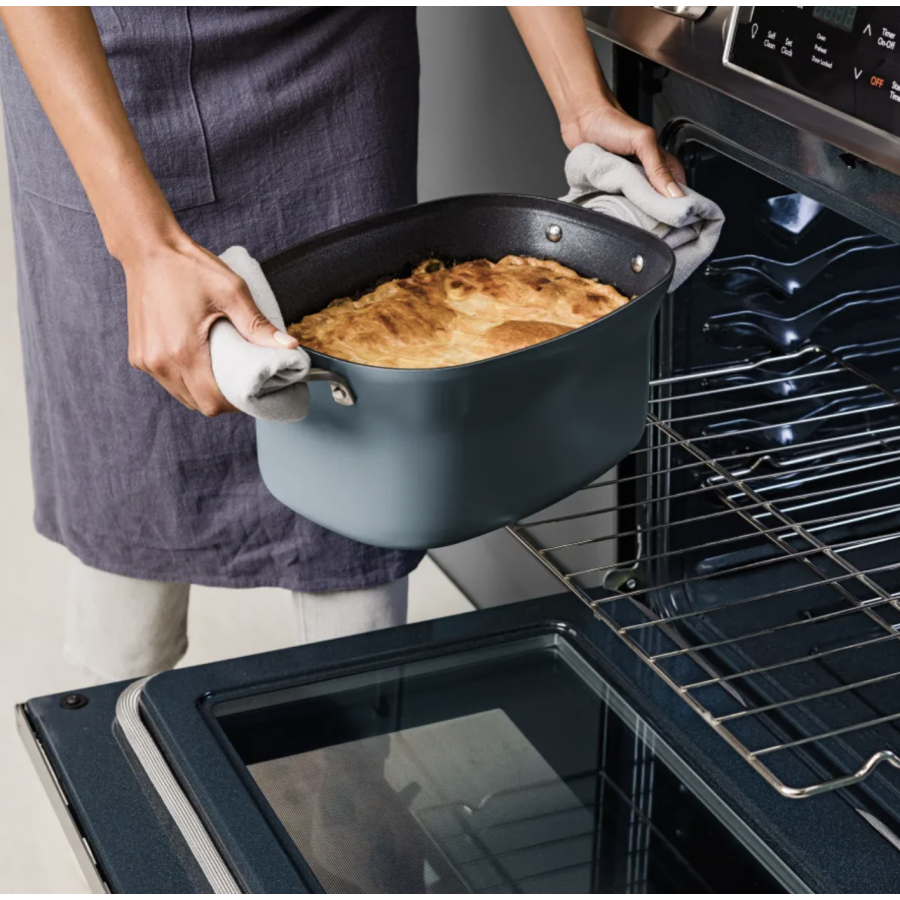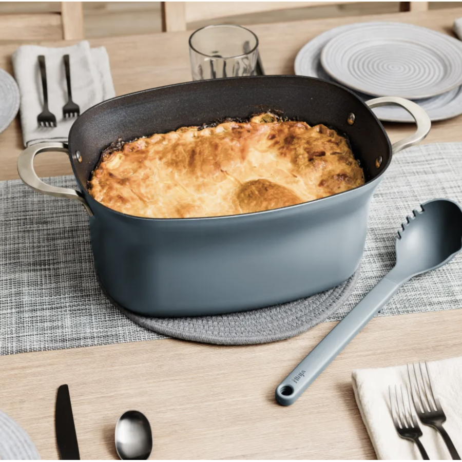 - Знімна каструля з антипригарним покриттям зі стійкістю до температури 240 °C. Вона ідеально підходить для приготування на плиті, в духовці чи навіть для сервірування страв на стіл.