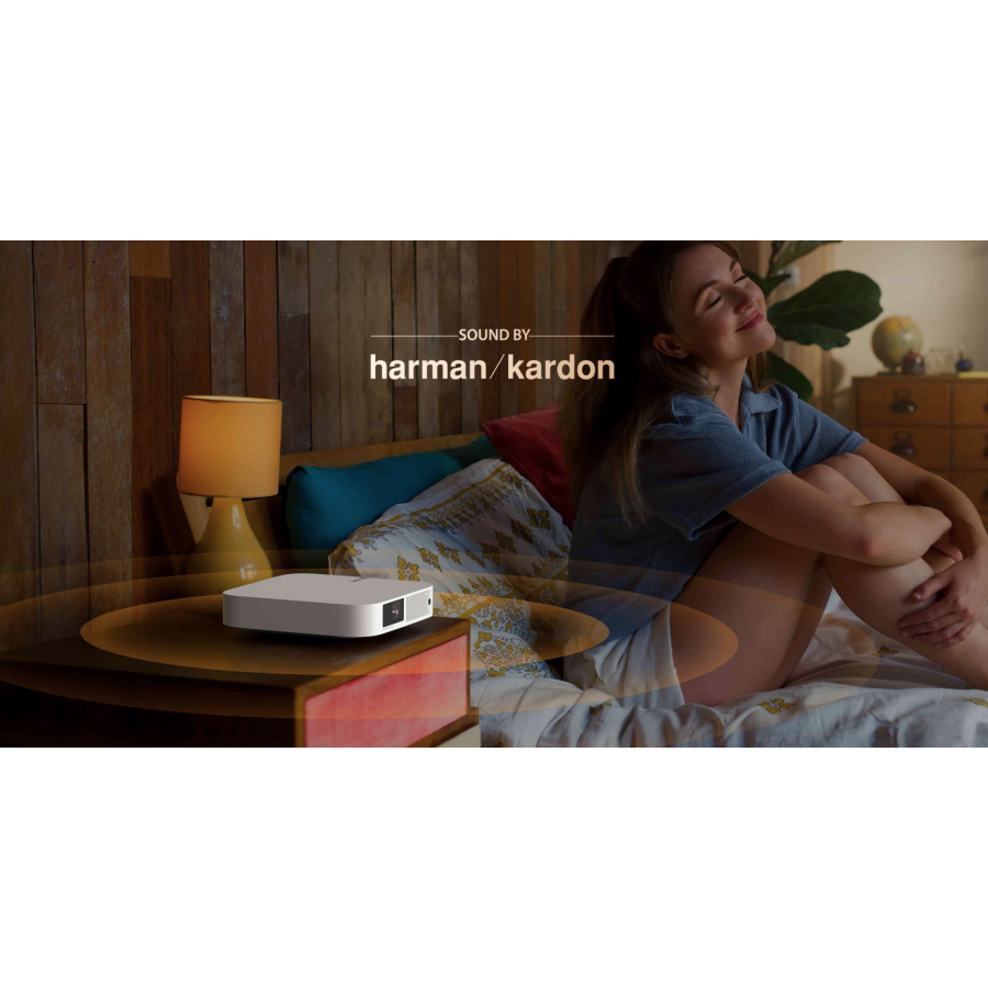 Ви з легкістю зможете брати проектор у подорожі або на роботу чи навчання. Загальна вага складає лише 900 грамів, а висота корпусу — 5 сантиметрів. Основна й найважливіша ділянка з лінзою захищена від подряпин додатковою панеллю. Тому зображення завжди залишатиметься якісним і чітким. Корпус має закруглені кути для зручності й безпеки пристрою. Це зменшує ризик пошкодження у разі падіння чи удару.