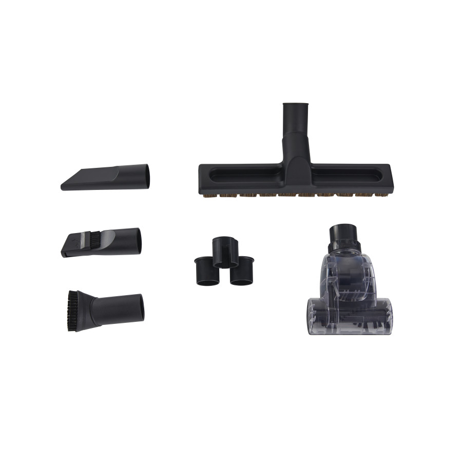 У комплекті до пилососа ви отримаєте декілька корисних аксесуарів, що допоможуть ефективно та якісно очистити різноманітні поверхні у вашому домі. Базова довга насадка забезпечує швидке та ефективне прибирання, оскільки вона поглинає більше пилу завдяки оптимальній площі контакту з поверхнями. Щілинна насадка ідеально підходить для прибирання за меблями, під ліжком або між шафами. Вузька насадка зі щіткою допоможе миттєво очистити поверхні від пилу та бруду, зокрема на меблях або підвіконнях. Насадка з верхньою щіткою ідеально підходить для прибирання пилу з жалюзі, карнизів чи радіаторів. А насадка для килимів знадобиться для очищення килимів з різною довжиною волокон і килимових покриттів. Із цим різноманітним комплектом насадок ви впораєтесь з будь-яким побутовим завданням.
