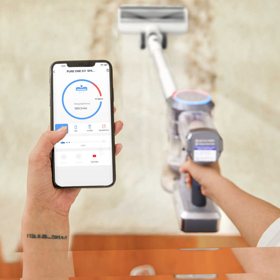 Неозброєним оком неможливо помітити мікрочастинки забруднень, тому навіть на нібито чистій підлозі все ще залишається безліч пилу. Tineco оснащений смарт-системою iLoop на базі штучного інтелекту. Пилосос сканує підлогу та обирає оптимальний рівень потужності, щоб впоратися з найдрібнішими частинками. Коли поверхня буде повністю чистою, червоне кільце на дисплеї змінить колір на синє.