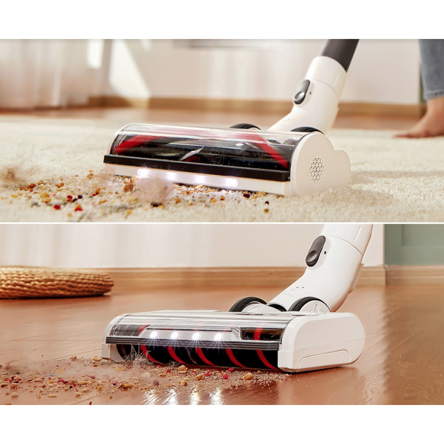У комплекті до пилососа ви отримаєте дві потужні роликові щітки для прибирання. Багатофункціональна щітка підійде для прибирання килимів, а м’яка роликові щітка — для твердих покриттів.