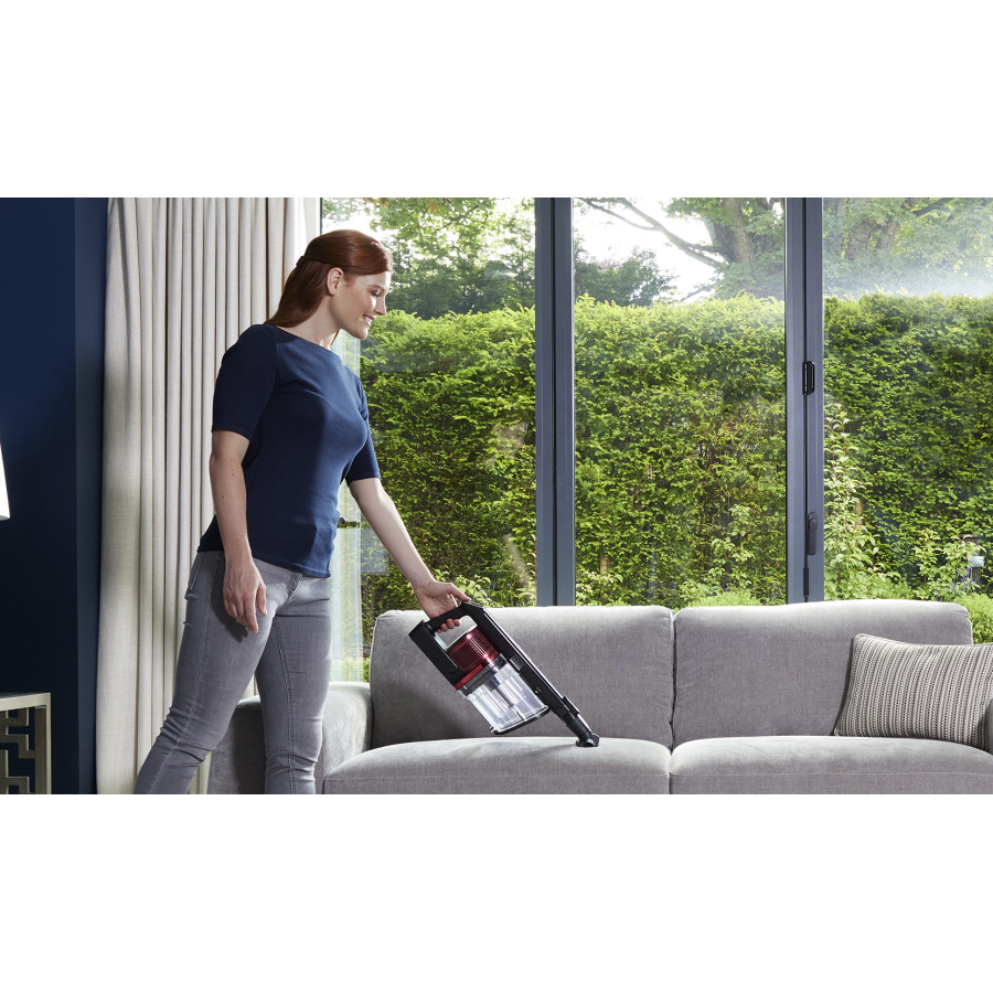 Убирайте труднодоступные места удобно! Просто отсоедините основной блок от стика одним нажатием кнопки и получите портативный многофункциональный пылесос, который легко очистит шторы, салон автомобиля, поверхность под мебелью, диваны, лестницы и т.д.
