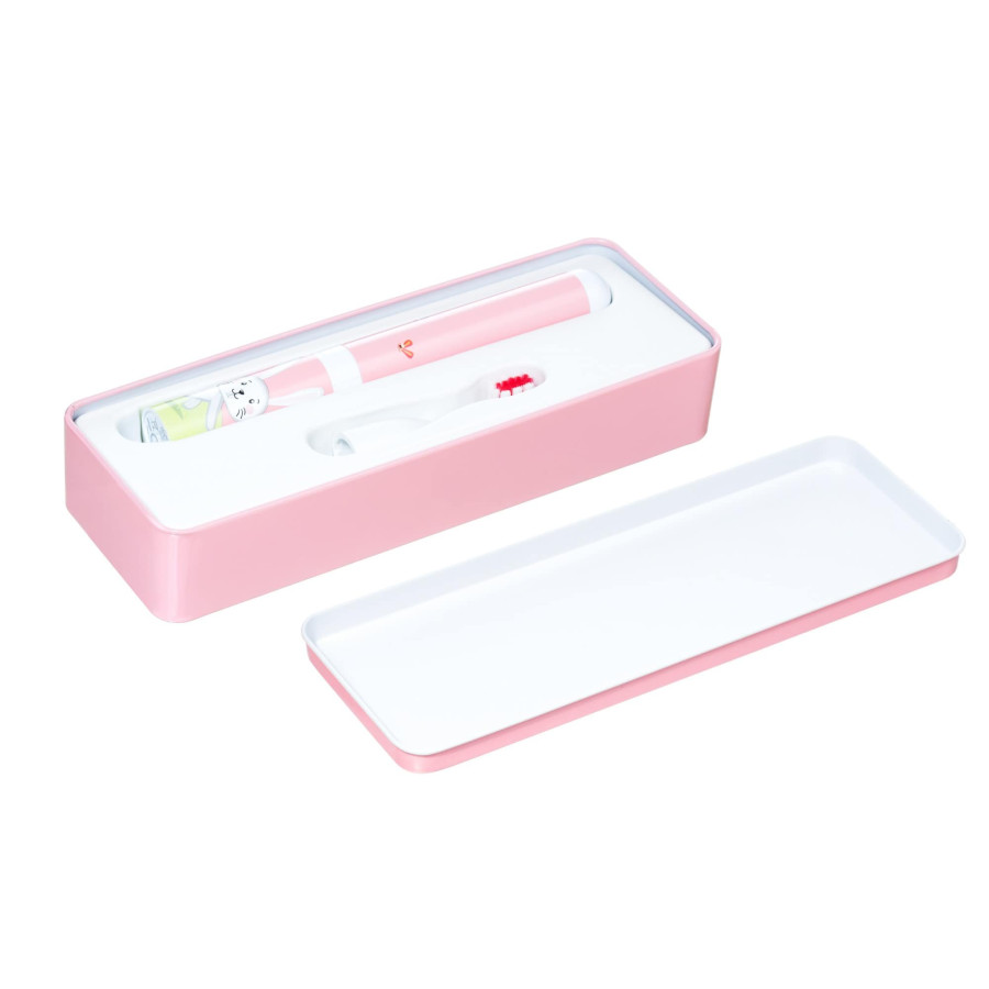 Щетка простая в использовании, одной батарейки типа ААА (в комплекте) хватает на несколько месяцев. Устройство автоматически выключается через 2 минуты после завершения очистки. В комплекте поставляется металлический чехол с красивым сказочным рисунком для удобства упаковки. Легкая комфортная конструкция подойдет для детских рук от 3 лет. А над дизайном щетки поработала известная иллюстраторка детских книг Марта Билецкая.