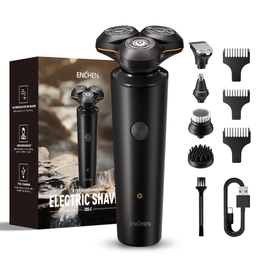 Электробритва ENCHEN X8S-С становится универсальным гаджетом для комплексного ухода за волосами. В комплекте вы получаете 5 типов сменных насадок, каждая из которых помогает выглядеть ухоженно без лишней траты времени или дополнительных устройств: