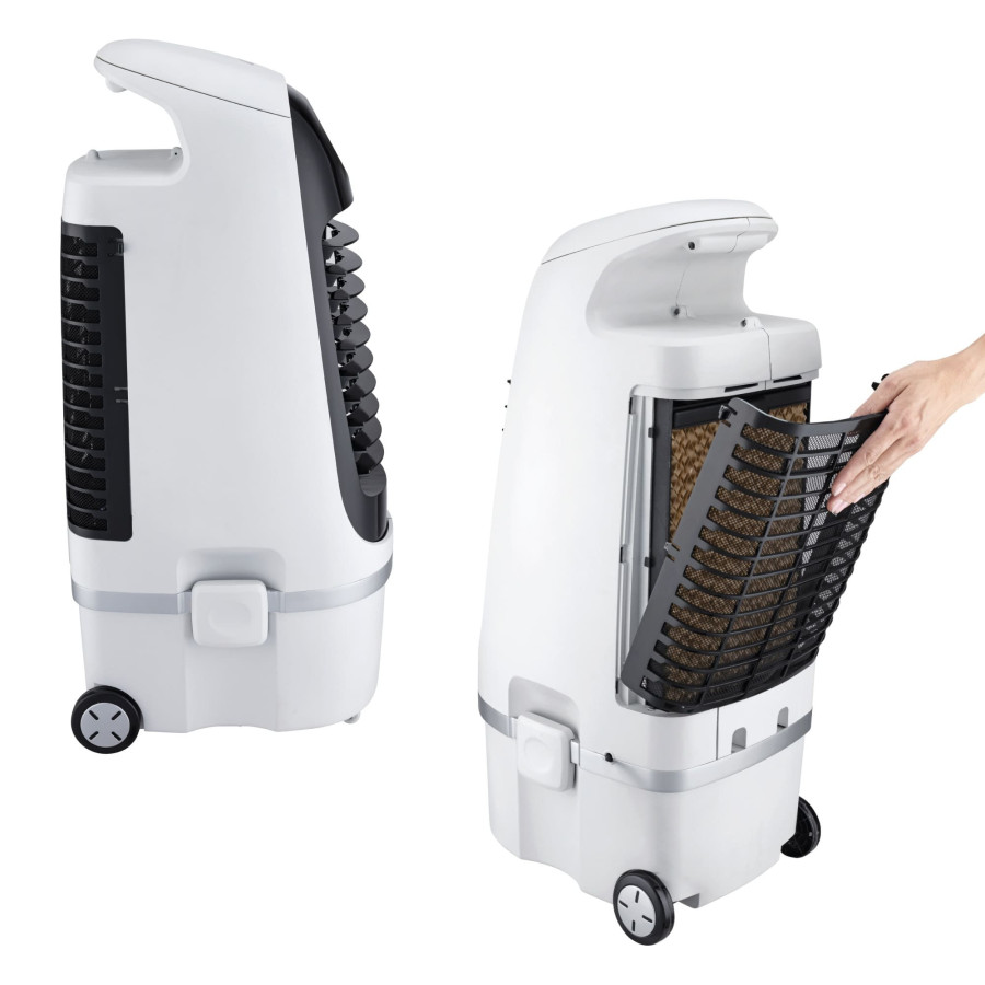 Энергоэффективное охлаждение; потребляемая мощность 7 Вт в тихом режиме и 36 Вт в быстром; Бак для воды 10 литров; Высокая эффективность, мощный поток воздуха: 550 м3/ч