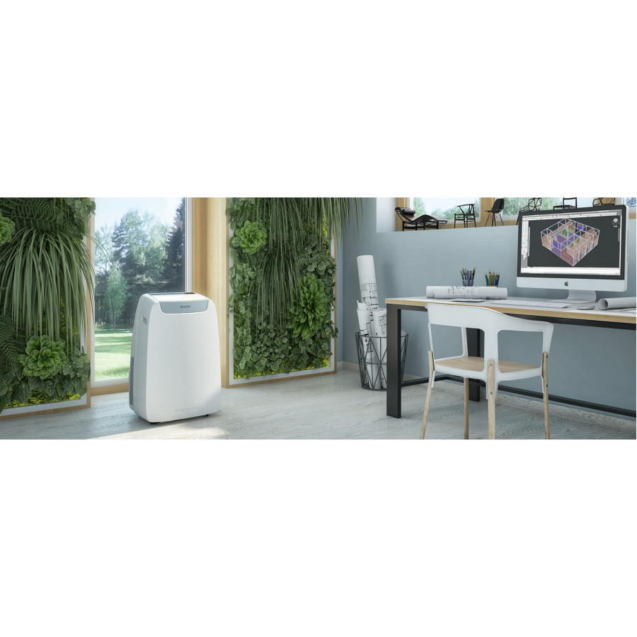 Кондиционер Olimpia Splendid DOLCECLIMA Air Pro – самое эффективное портативное устройство класса A++! Благодаря режимам осушения и вентиляции он не только охлаждает воздух, но обеспечивает комфортную влажность и циркуляцию. Модель оснащена WiFi, что позволяет управлять кондиционером из смартфона даже за пределами дома. Экологический хладагент R290 уменьшает влияние на окружающую среду, а встроенная технология Pro Power мощностью 2,4 кВт сделает кондиционер надежным союзником в борьбе за приятный микроклимат в комнате. Благодаря движущимся жалюзи в верхней части корпуса поток воздуха можно легко направлять в комнату. Электростатический фильтр предохраняет устройство от пыли, а фильтр с активированным углем устраняет неприятные ароматы. Компактный дизайн делает Olimpia Splendid идеальным выбором для домов, офисов и других помещений с ограниченным пространством.