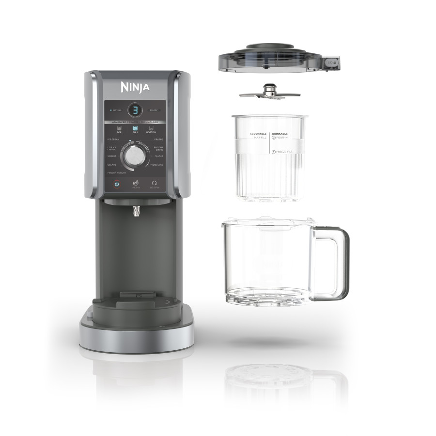 Мощные лезвия из нержавеющей стали в считанные минуты создают самое вкусное и освежающее замороженное лакомство, мгновенно смешивая ингредиенты и измельчая частицы льда. Не забудьте приготовить десерты для всей семьи, удобно храня их в трех контейнерах CREAMi Deluxe с крышками объемом по 709 мл. Легко промывайте детали мороженицы проточной водой, они также совместимы с посудомойкой. А руководство по рецептам порадует вас изысканными вкусовыми комбинациями.