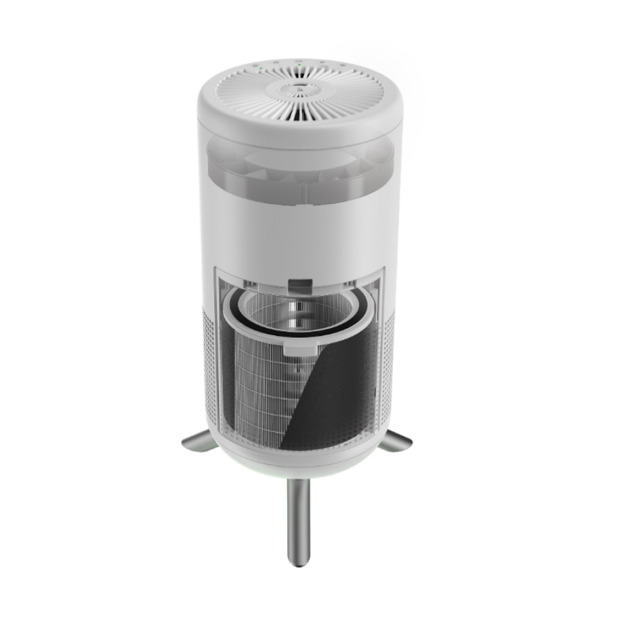 Очиститель Honeywell оснащен датчиком качества воздуха, который автоматически мониторит степень загрязнения. И, в зависимости от уровня, цветной индикатор подсвечивает пол красным (когда высокое содержание примесей), желтым (средняя загрязненность) и зеленым (чистый воздух) цветами.