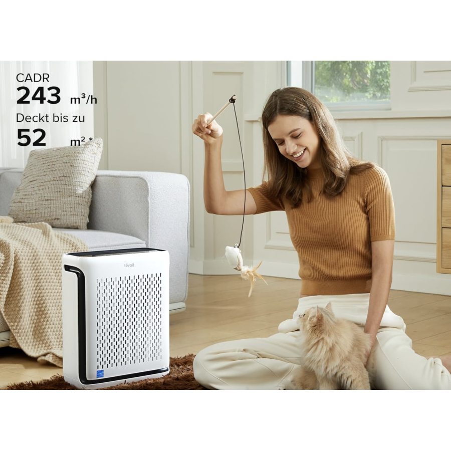 У вас есть домашние питомцы? Тогда воздухоочиститель Levoit Vital 100S Smart буквально создан для вас. Система фильтрации всегда эффективно выполняет свою работу с широким воздухозаборным отверстием U-формы, которое предотвращает засорение шерстью. Ваш дом будет энергоэффективным и свежим со специальным режимом Pet Mode. Избавьтесь от 99,97% примесей до 0,3 мкм с современным НЕРА-фильтром типа H13 (среднестатистическая бактерия имеет размер 1-10 мкм), а фильтр с активированным углем нейтрализует дым, формальдегид и неприятные ароматы.