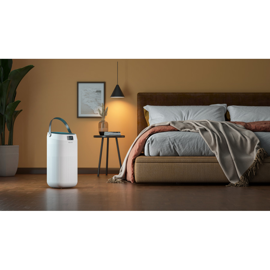 Практичный и компактный воздухоочиститель Olimpia Splendid AURA CARE легко перемещать помещением благодаря оригинальному дизайну и верхней ручке. Эффективный НЕРА-фильтр удерживает до 99,97% мельчайших частиц, также устройство оснащено предварительным фильтром, фильтром с активированным углем, УФ-лампой и ионизатором. А как насчет управления? Умный очиститель настраивается на панели, в приложении и голосовыми командами.