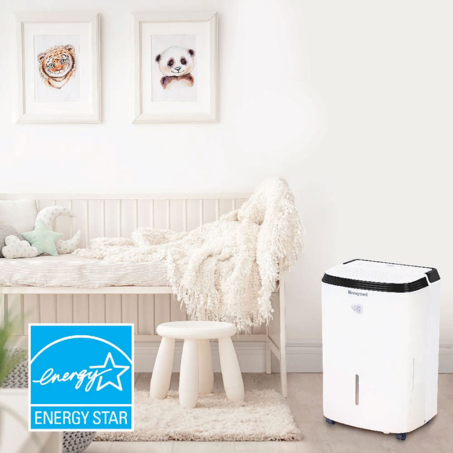 Honeywell продуктивно удаляет из воздуха излишнюю влагу. Сначала он быстро снижает ее уровень до 45%, а затем продолжает осушение с вентилятором, держа влажность и конденсат под полным контролем. Это отличный вариант, например, для кухни или ванной комнаты.