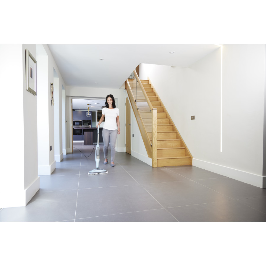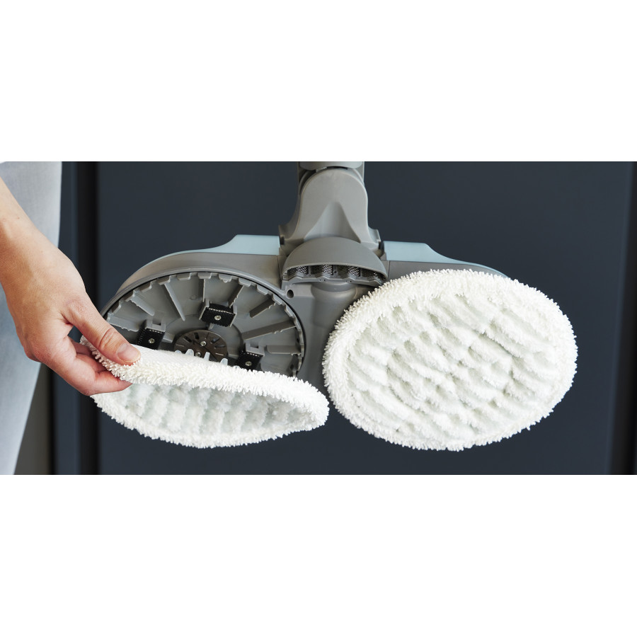 Швабра оснащена 2 специально разработанными скрабирующими насадками, которые вращаются 150 раз в минуту, пока вы скользите по полу, осторожно очищая прилипшую грязь, пыль, жир и бактерии.