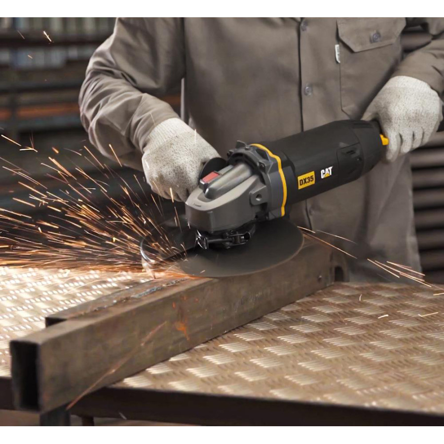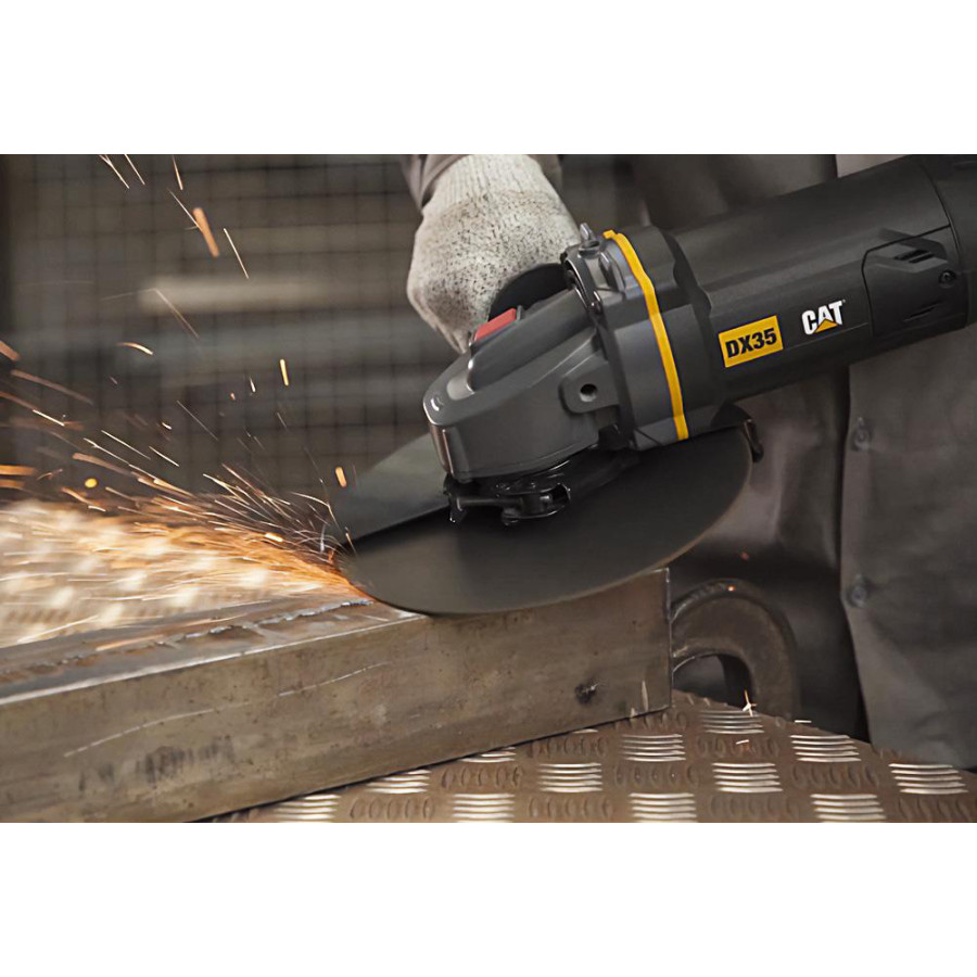 Безопасная и удобная в использовании CAT DX35 230 мм прекрасно справится с самыми сложными задачами. Плавное начало работы минимизирует риск травмирования. Защитный кожух легко изменяет угол для более точных результатов, а с антивибрационной ручкой вы не почувствуете усталости от активного шлифования. Задняя ручка регулируется в пределах 90° для еще большего комфорта. При смене насадки шпиндель автоматически переходит в неподвижное состояние. Почувствуйте все преимущества работы с CAT!