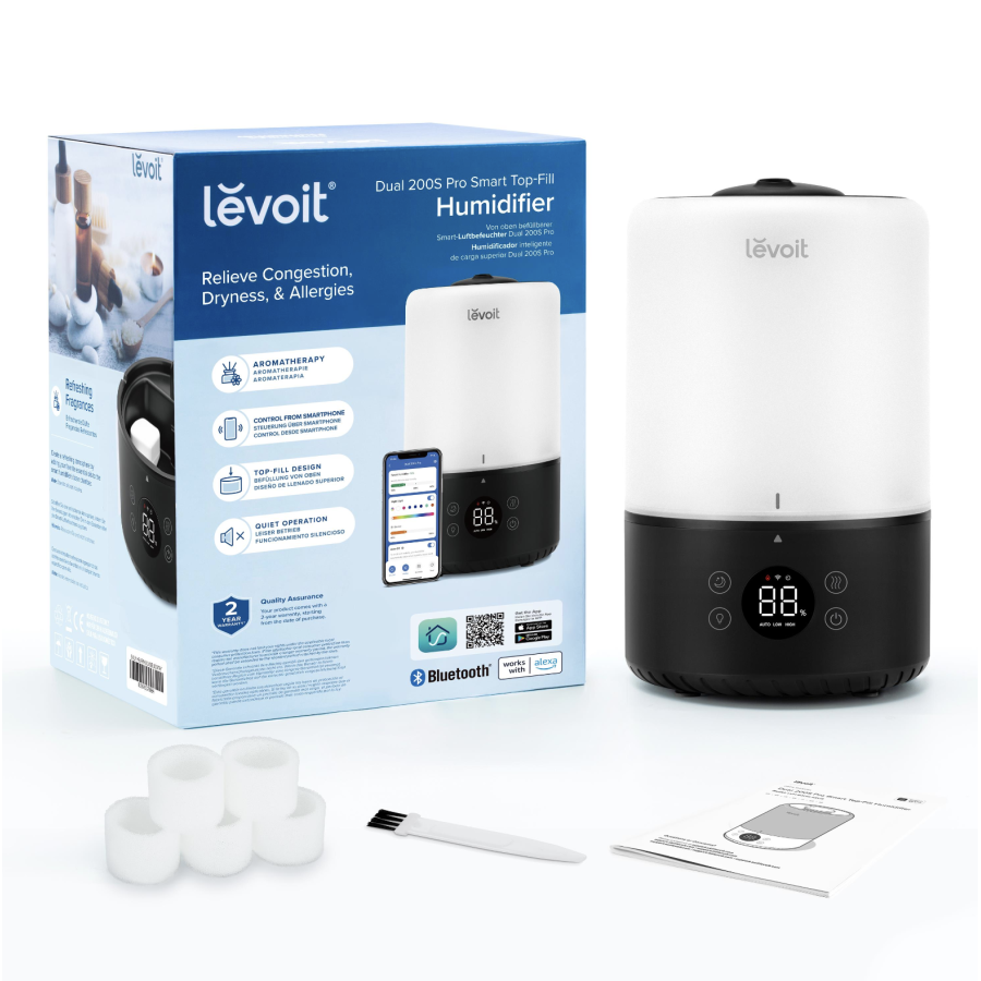 Наслаждайтесь мощным зарядом энергии и красивой кожей с идеальной влажностью воздуха! Добавляйте эфирные масла, настраивайте таймеры, не забудьте о графиках и управляйте всем голосом или в мобильном приложении с Levoit Dual 200S Pro! Вам не нужно постоянно протирать поверхность под устройством с двойным клапаном, который осторожно захватывает протекания еще до выхода. Вы получите до 25 часов прохладного ультразвукового распыления с 3-литровым резервуаром, поэтому ожидайте оптимального уровня влажности в течение всего дня. Настройте желаемый уровень тумана с удобным регулятором на корпусе, обратите внимание на дизайн верхнего наполнения и вращающееся сопло на 360 градусов, чтобы легко выбирать направлением распыления.
