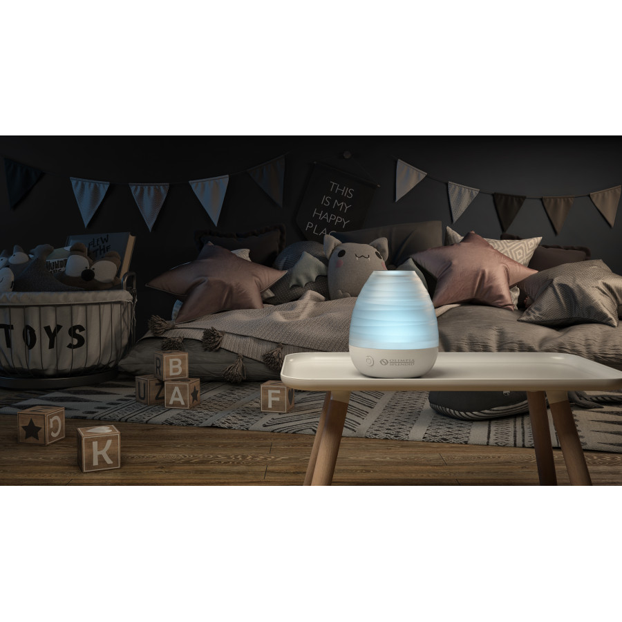 Хромотерапия – техника, использующая цвета для улучшения физического и психологического состояния человека. Регулируемая LED-подсветка Olimpia Splendid может этому помочь, ведь цвет настраивается в соответствии с вашим настроением, состоянием здоровья или ситуацией. К примеру, фиолетовый поддерживает работу нервной системы, желтый повышает тонус, а голубой успокаивает. Эта функция придает увлажнителю еще один уровень комфорта и помогает пользователю создать приятную атмосферу.