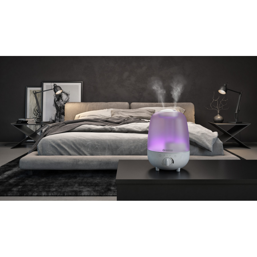 Хромотерапия – техника, использующая цвета для улучшения физического и психологического состояния человека. Регулируемая LED-подсветка Olimpia Splendid может этому помочь, ведь цвет настраивается в соответствии с вашим настроением, состоянием здоровья или ситуацией. К примеру, фиолетовый поддерживает работу нервной системы, желтый повышает тонус, а голубой успокаивает. Эта функция придает увлажнителю еще один уровень комфорта и помогает пользователю создать приятную атмосферу.