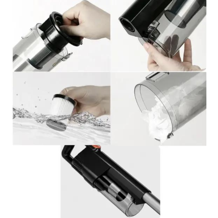 Чтобы пылесос генерировал максимальную эффективность, важно регулярно очищать пылесборник и HEPA-фильтр. Нажмите и удерживайте кнопку разблокировки пылесборника, чтобы без усилий достать его, а затем высыпьте накопившуюся пыль в ведро. Далее снимите блок HEPA, который состоит из фильтра из нержавеющей стали и HEPA-фильтра, и промойте каждый элемент чистой водой. После этого оставьте их сушиться на воздухе в течение 24 часов для полного высыхания, и только после этого снова установите в пылесборник. После сборки верните пылесборник на основной двигатель устройства. Для поддержания высокой производительности рекомендуется заменять пылесборник ежемесячно. Наличие HEPA-фильтра крайне важно для задерживания мелких частиц пыли, аллергенов и шерсти животных, чтобы воздух в комнате был чистым.