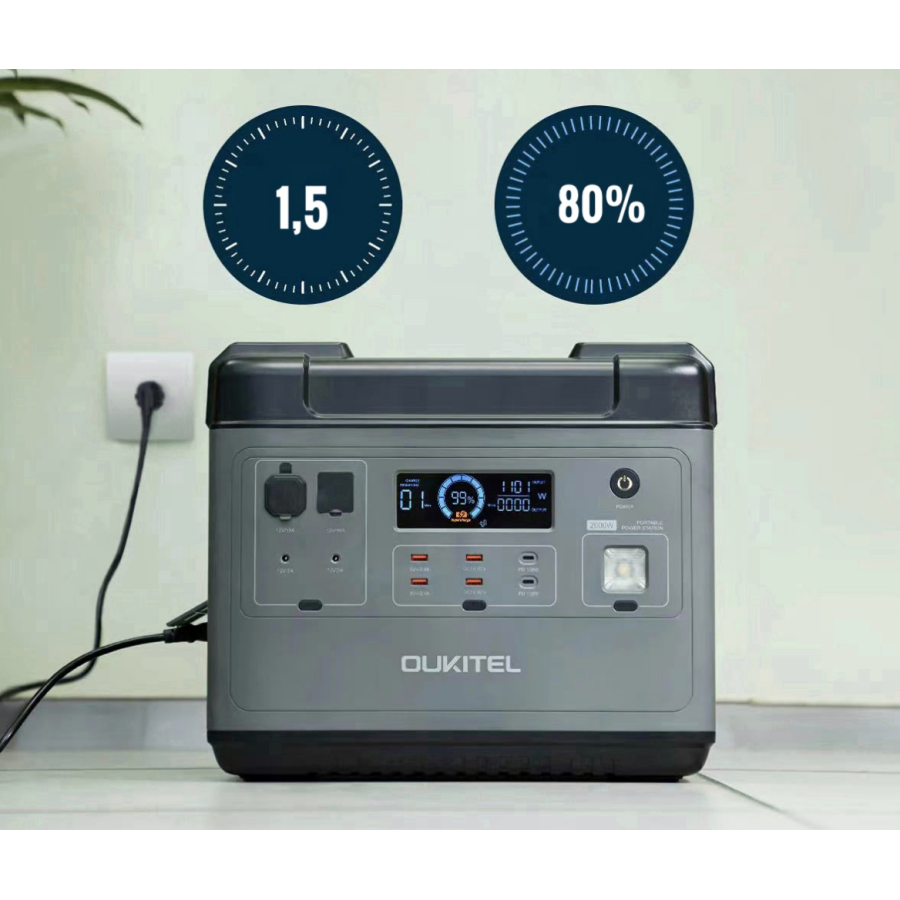 Система бесперебойного питания в зарядной станции Oukitel P2001 2000 Вт моментально активируется за 10 миллисекунд при отключении электроэнергии. Быстрый отклик гарантирует, что ваши устройства и бытовая техника избегут перерывов в работе и потенциальных повреждений.