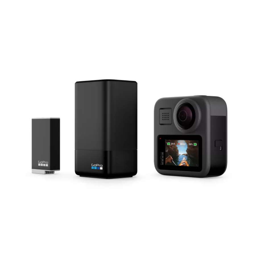 Зарядное устройство подойдет для GoPro MAX. С ним вы сможете заряжать две батареи одновременно, чтобы не приходилось долго ждать на продолжение съемки. А дополнительный аккумулятор в комплекте удвоит время записи.