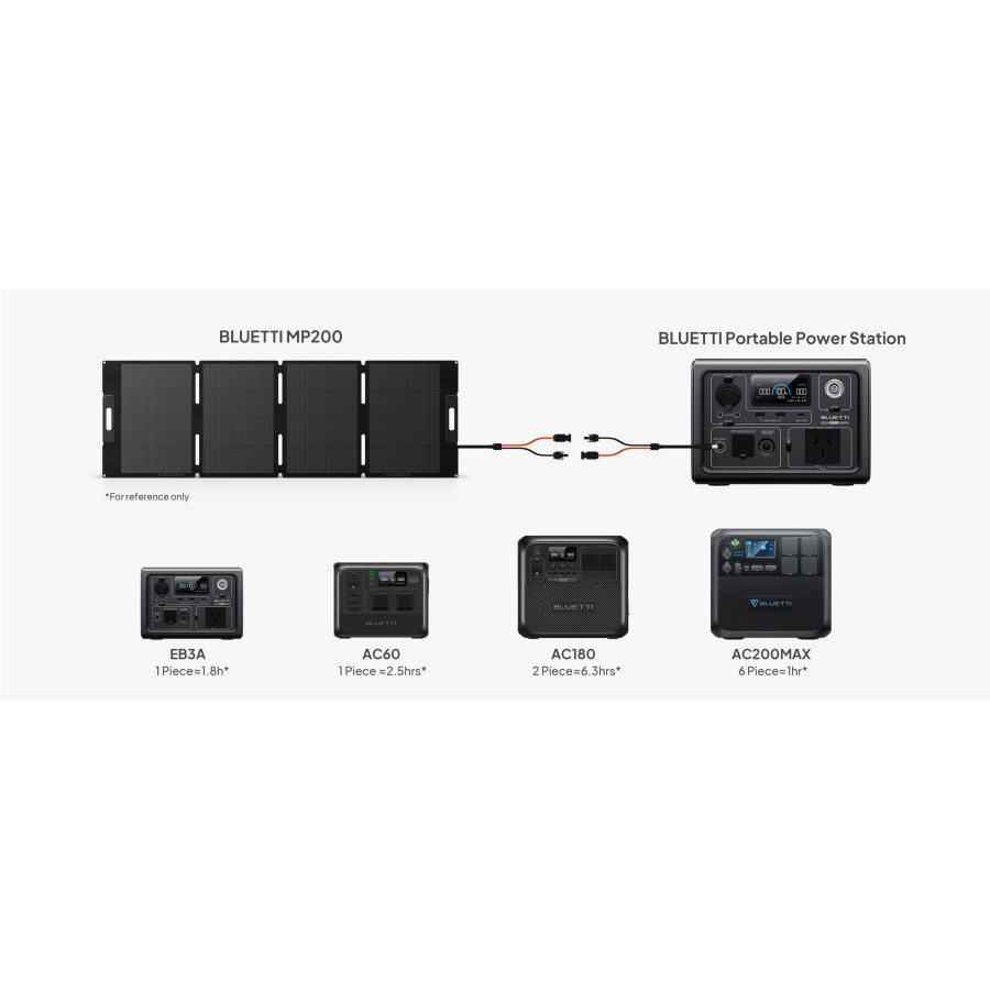 Хочете мати силу сонця завжди під рукою? Ця сонячна панель не лише потужна, але й неймовірно зручна у використанні. Завдяки ергономічній ручці ви можете легко переносити її. Але справжня магія починається, коли ви поєднуєте її з іншими пристроями Bluetti. Наприклад, лише одна панель MP200 здатна повністю зарядити станцію EB3A всього за 2,3 години. Сумісність з багатьма моделями Bluetti робить MP200 універсальним рішенням для будь-яких ваших енергетичних потреб.