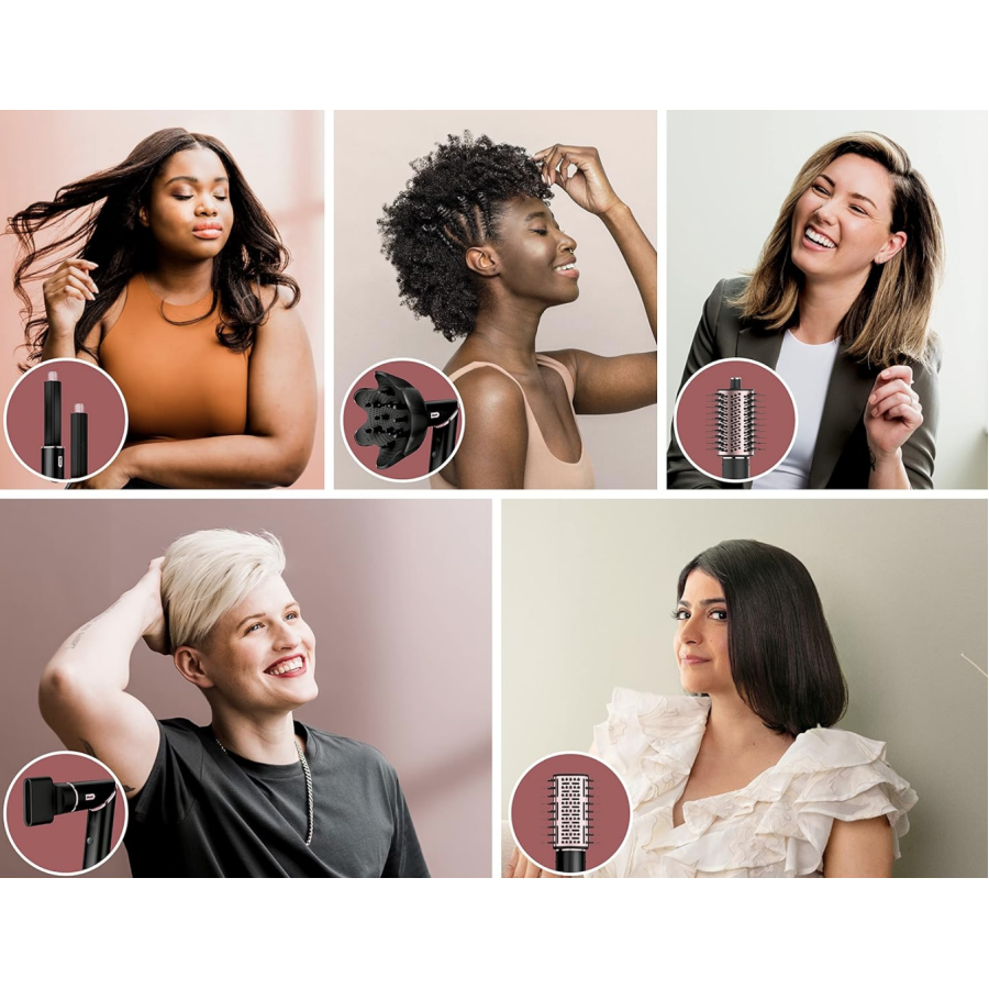 У стайлера є ще декілька важливих функцій, які варто відзначити. Ви зможете моделювати оригінальні зачіски, не обмежуючись лише класичним сушінням і хвилями. Спробуйте модифікувати своє каре, наприклад. Закрутити волосся всередину або в зовнішньому напрямку і підкреслити таким чином вашу індивідуальність. Для цих цілей ідеально підходить плоска щітка. А довге волосся можна просто висушити швидше з її використанням. Кожна з насадок-щіток має різноманітні види зубців, що дозволяє рівномірно й обережно розчісувати волосся. З круглою насадкою ви створите шалений об’єм зачіски, яка здатна повністю змінити ваш образ.