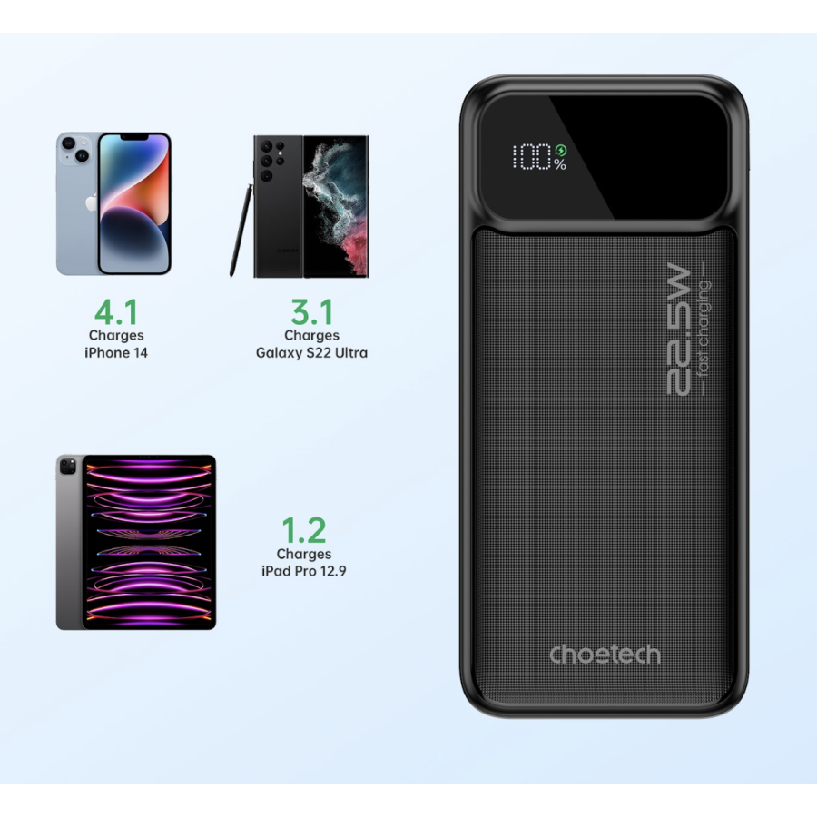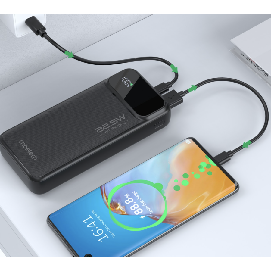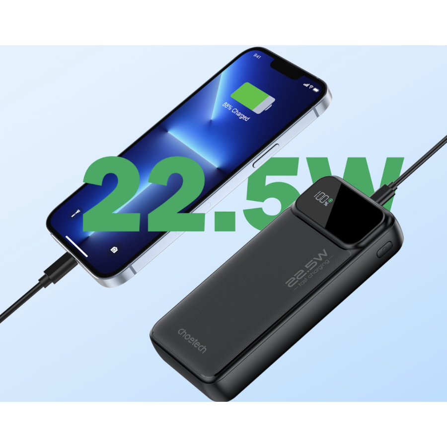 Портативний павербанк Choetech B729 з підвищеною ємністю 20000 мАг забезпечить вас електроенергією в будь-якій ситуації. Завдяки технології швидкої зарядки 22,5 Вт, ви зможете зарядити iPhone на 60% лише за 30 хвилин — це вдвічі швидше, ніж звичайні зарядні пристрої на 2,4A. Ви отримаєте повний заряд смартфона до 5 разів, планшета до 2 разів або суттєве поповнення заряду ноутбука без необхідності шукати розетку.