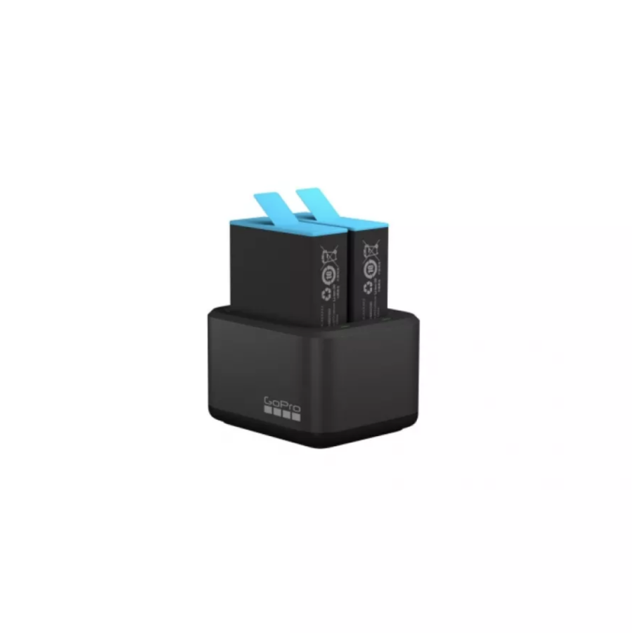 Зарядний пристрій для двох акумуляторних батарей GoPro HERO9 Black Dual Charger + Battery Зручна зарядка відразу двох акумуляторів GoPro за допомогою подвійного зарядного пристрою і запасного літій-іонного акумулятора ємністю 1720 мАг для вашої GoPro. Для зарядки підходять більшість портів USB. Щоб зарядити акумулятор до 38%швидше, використовуйте GoPro Supercharger (зарядний пристрій з двома роз'ємами і міжнародними адаптерами, не входить в комплект поставки).